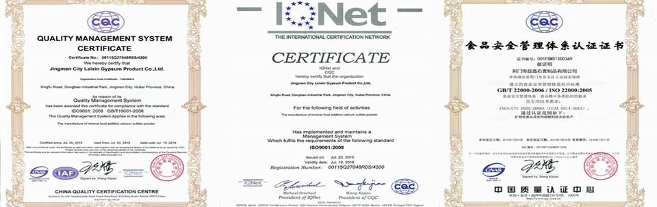 荊門市磊鑫石膏製品有限公司は石膏製品の研究、生産と販売を一體にして、一流の技術的な企業(yè)である。工場は荊門市東寶工業(yè)園に位置して、面積も25000平方メートルになります。當社は磊鑫、杰普生、凱氏蘇特という三つの商標をもって、特許も二つがある。主な製品は醫(yī)薬品グレード製品、食品グレード製品、農(nóng)業(yè)グレード製品と建築材料などがある。経済的な価格と最高の品質(zhì)で、當社は優(yōu)秀な製造商として、世界中に多くの有名な企業(yè)と協(xié)力しています。インポートとエクスポートの権利を持って、當社の製品は韓國、日本、ロシア、ヨーロッパなどのマーケットにもよく販売されています。お客様に対して、神様のように正直します、お品質(zhì)に対して、命のように頑張ります。當社と協(xié)力することはあなたの正しい選択で、共に進むことはわたしたちの同じ目標である。今後ともご指導ご支援を賜りますよう、どうぞよろしくお願い申し上げます。 ――中國最高の石膏(硫酸カルシウム)製造商になる ――CGC·磊鑫石膏